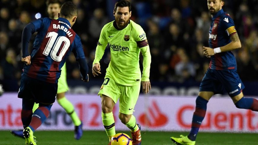 स्पेनिस ला लिगामा बार्सिलोनाले लेभान्टेमाथि ५–० को भारी जित निकालेको छ । बार्सिलोनाको जितमा लियोनल मेस्सीले ह्याट्रिक गरेका छन । भ्यालेन्सियामा भएको खेलको ३० मिनेटसम्म बार्सिलोना बराबरीमा रोकिएको थियो । तर ३५ औं मिनेटमा लुइस स्वारेजले गोल गर्दै टिमलाई अग्रता दिलाएका थिए । चोटबाट कमब्याक गरेका उनले लियानल मेस्सीको पासमा गोल गरे । त्यसपछि ४३ औं मिनेटमा लियोनल मेस्सी आफैँले गोल गर्दै टिमको अग्रता दुई शून्यमा र्पुयाए । पहिलो हाफमा २ गोलले अगाडि रहेको बार्सिलोनाले दोस्रो हाफमा तीन गोल थप्यो । जसमा ४७ औं मिनेटमा मेस्सीले व्यक्तिगत दोस्रो तथा टिमका लागि तेस्रो गोल गरे । ला लिगामा मेस्सीको यो ३१ औं ह्याट्रिक थियो । जितपछि बार्सिलोनाले दोस्रो स्थानमा रहेको सेभियासँगको दुरी तीन अंकमा कायम राखेको छ । बार्सिलोनाको ३४ र सेभियाको ३१ अंक छ ।