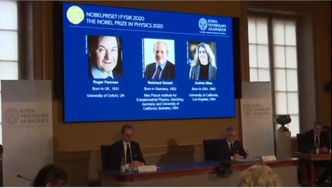एजेन्सी २१ असोज यस वर्षको भौतिक शास्त्रतर्फको नोबेल पुरस्कार तीन जना वैज्ञानिकलाई संयुक्तरुपमा प्रदान गरिएको छ । हिजो रोयल स्वीडिस एकेडेमी अफ साइन्सले बेलायतका रोजर पेनरोज, जर्मनीका रेनहार्ड गेन्जेल र अमेरिकाकी एन्द्रेया घेजलाई भौतिक शास्त्रतर्फको नोबेल पुरस्कार प्रदान गर्ने निर्णय गरिएको हो । ब्ल्याकहोल र सापेक्षवादको सिद्धान्तको अन्तर्सम्बन्ध पत्ता लगाउने बेलायती वैज्ञानिक