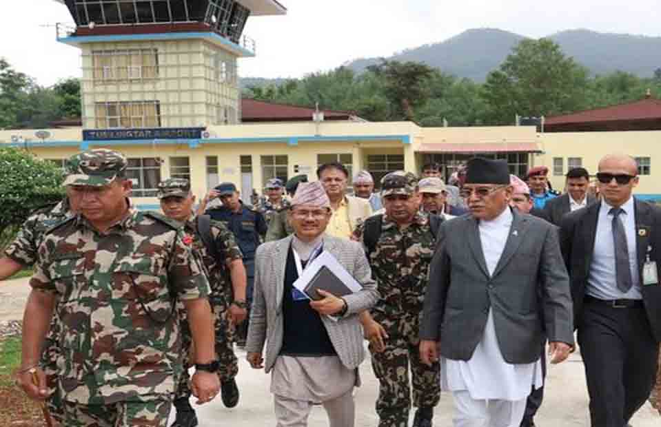 संखुवासभा, ४ असार । प्रधानमन्त्री पुष्पकमल दाहालले बाढी र पहिरो पिडितको युद्धस्तरमा उद्धार र राहतको काम गर्ने बताउनु भएको छ । उहाँले बाढी र पहिरोले ठुलो क्षति भएकाले उद्धार र राहतको काममा सरकारको उच्च प्राथमिकता रहेको बताउनु भयो । आज सेनाको हेलिकप्टरमा गृहमन्त्री नारायणकाजी श्रेष्ठलगायत जनप्रतिनिधिसहित बाढीग्रस्त क्षेत्र संखुवासभा पुग्नु